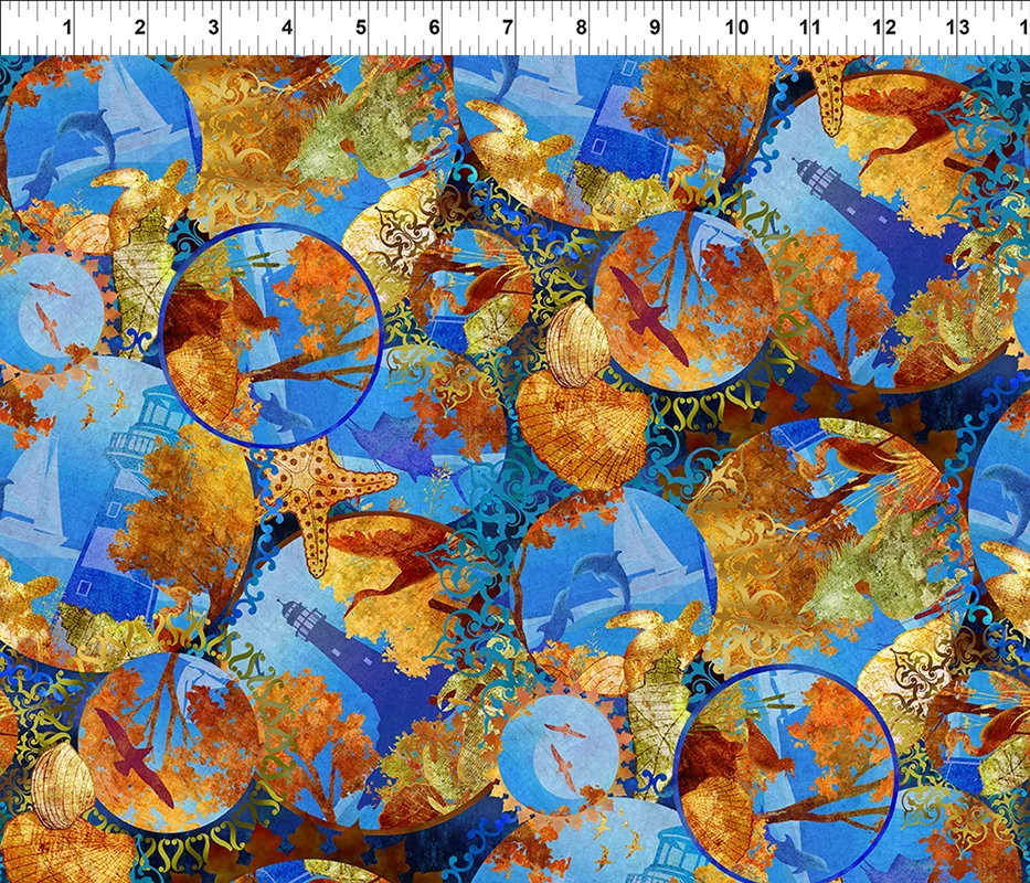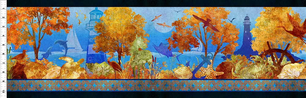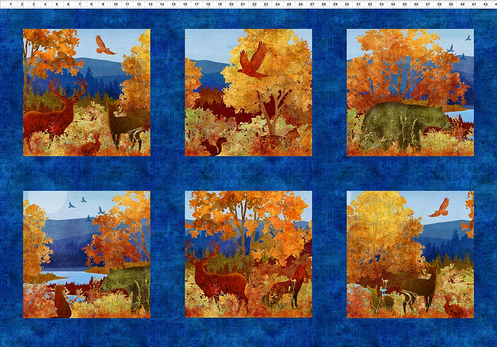 This year’s fabrics celebrate the autumn beauty of the Blue Ridge region – from mountain tops to shoreline lighthouses. There are two panels containing six, 11″ squares each. One panel features woodland animals and the other seashore scenes. Two stripe panels pick up these same themes. Six complimenting prints have leaves, diamonds, and a circular print using motifs from the panels. A toss print highlights North Carolina, Virginia and West Virginia with two color variations for each state. Plus a huge variety of blender fabrics make matching your color palette a breeze.